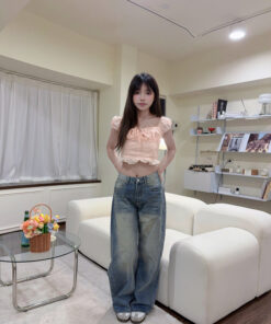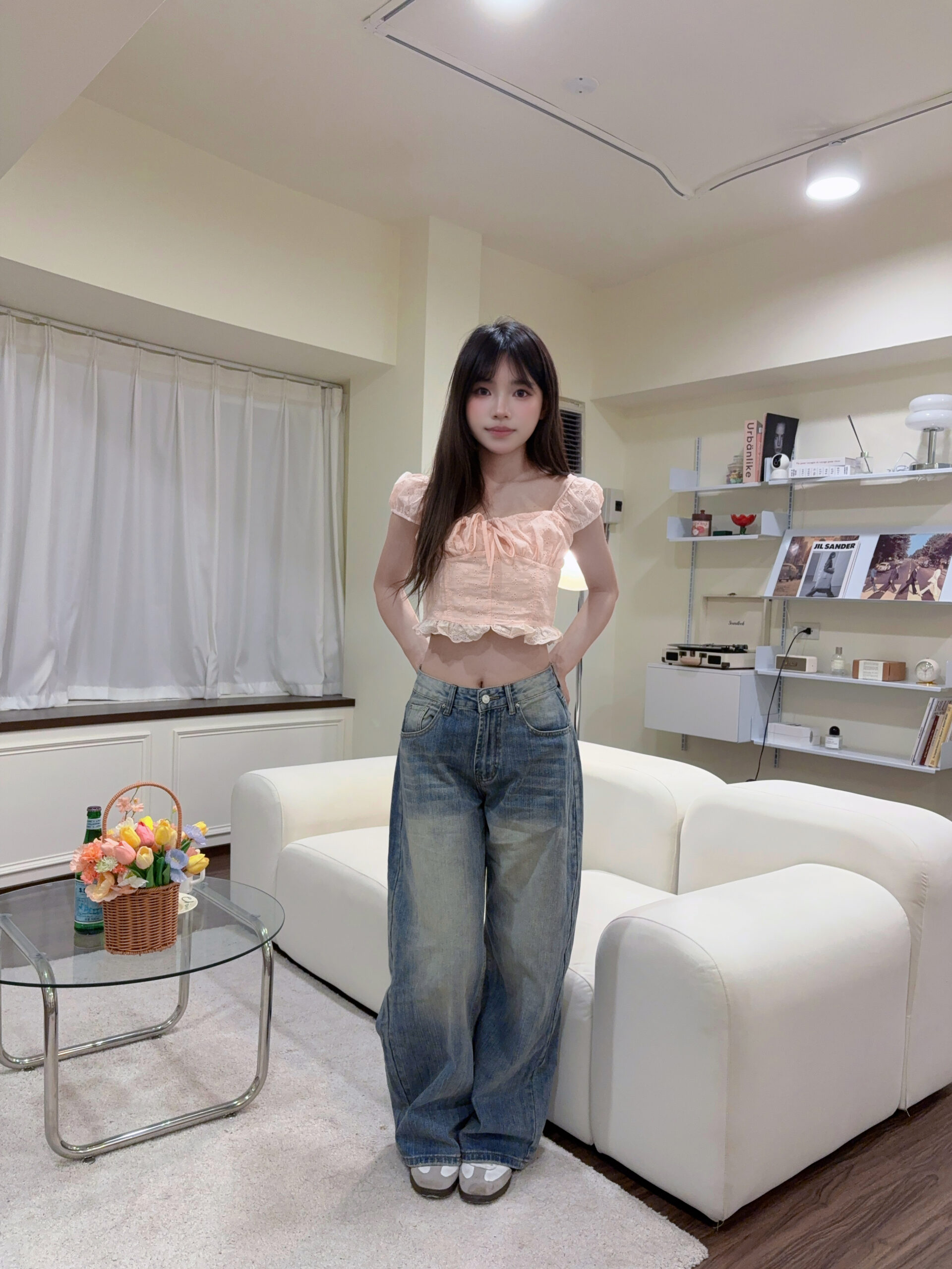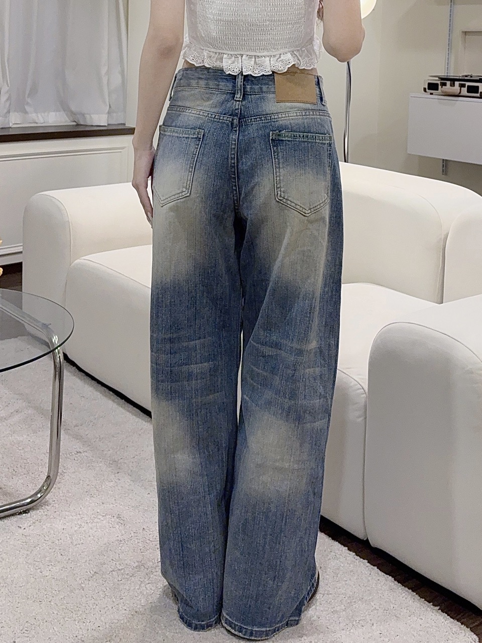 ୨୧ 𝐑𝐎𝐍𝐈 로니 𓂃 復古刷色寬直筒牛仔褲 ♡