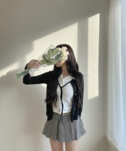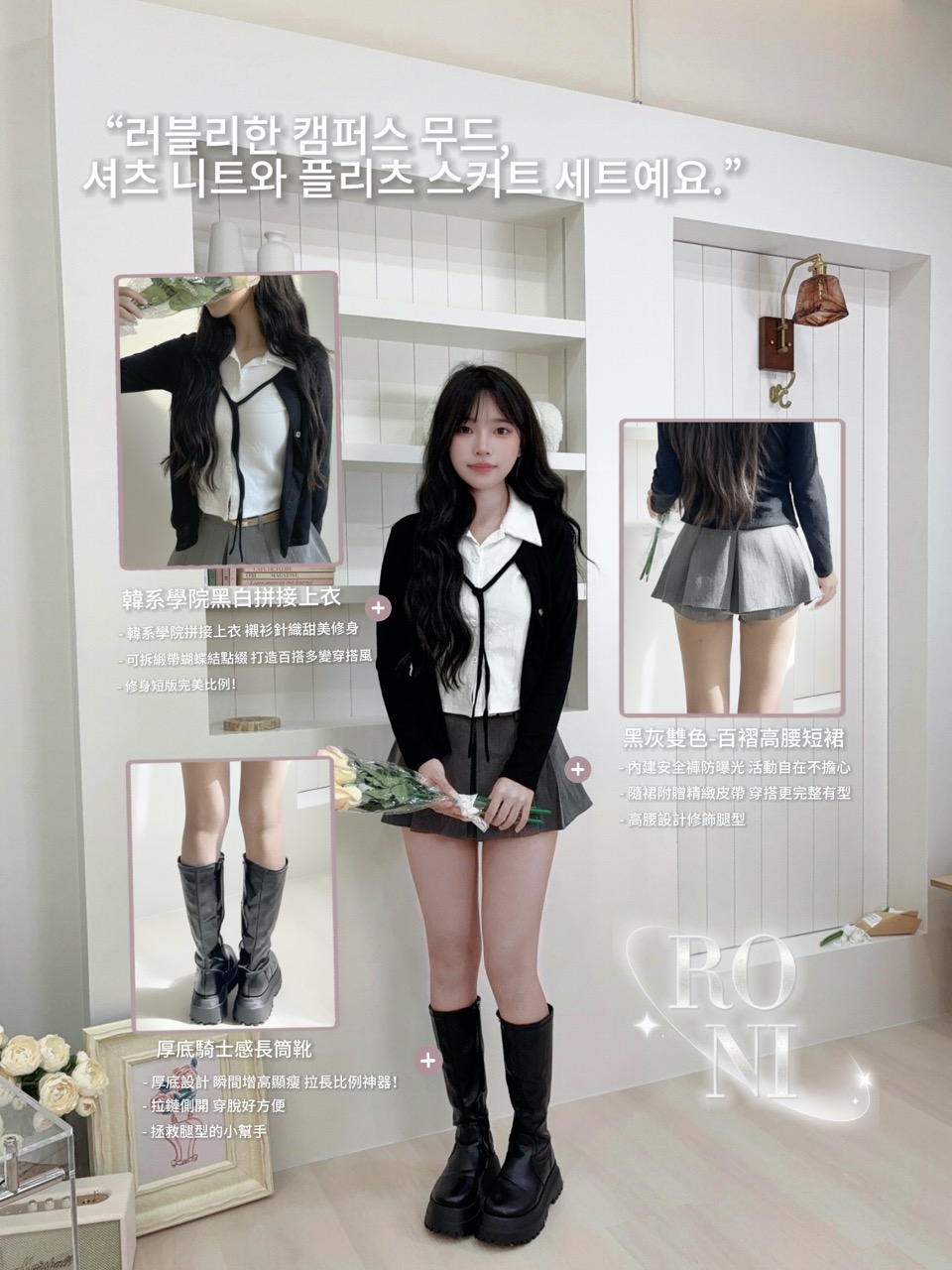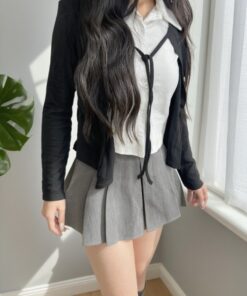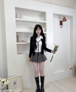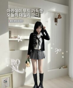 ୨୧ 𝐑𝐎𝐍𝐈 로니 𓂃 韓系學院黑白拼接上衣♡