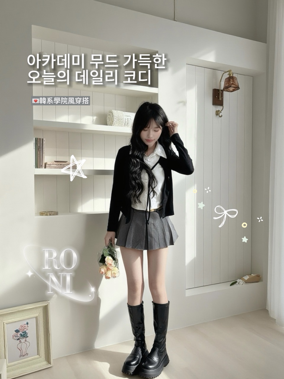 ✔ 黑灰白拼接:經典不敗的學院氛圍