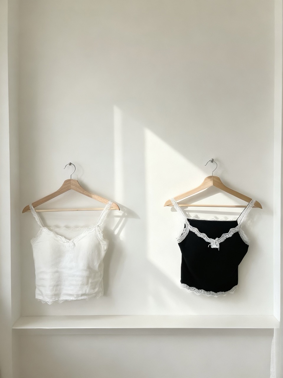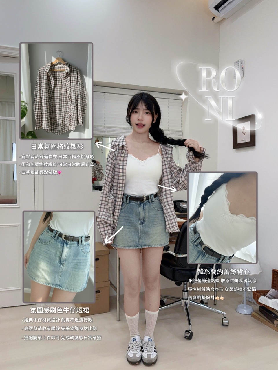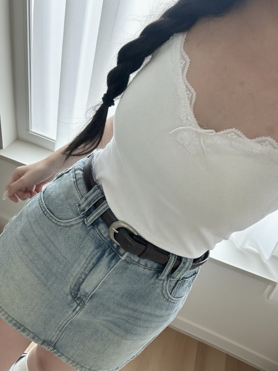 ୨୧ 𝐑𝐎𝐍𝐈 로니 𓂃 韓系簡約蕾絲背心♡